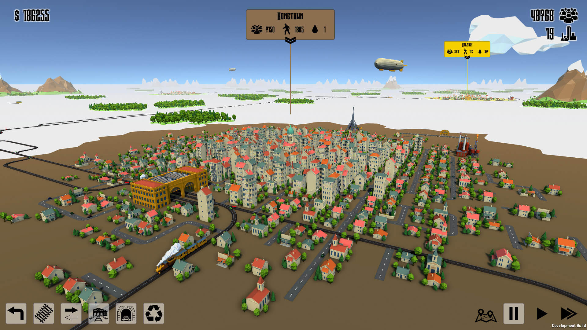 Весь мир генерируется процедурно. Есть три уровня сложности. Если не желаете напрягаться, а просто хотите скоротать время, выбирайте самый легкий. Для удобства пассажиры, раскрашены в цвета своих населенных пунктов, так проще ориентироваться. Отслеживайте не только пассажиропоток, но и снабжение товарами. Разнообразные виды транспорта. Поезда, дирижабли, грузовики и многое другое.